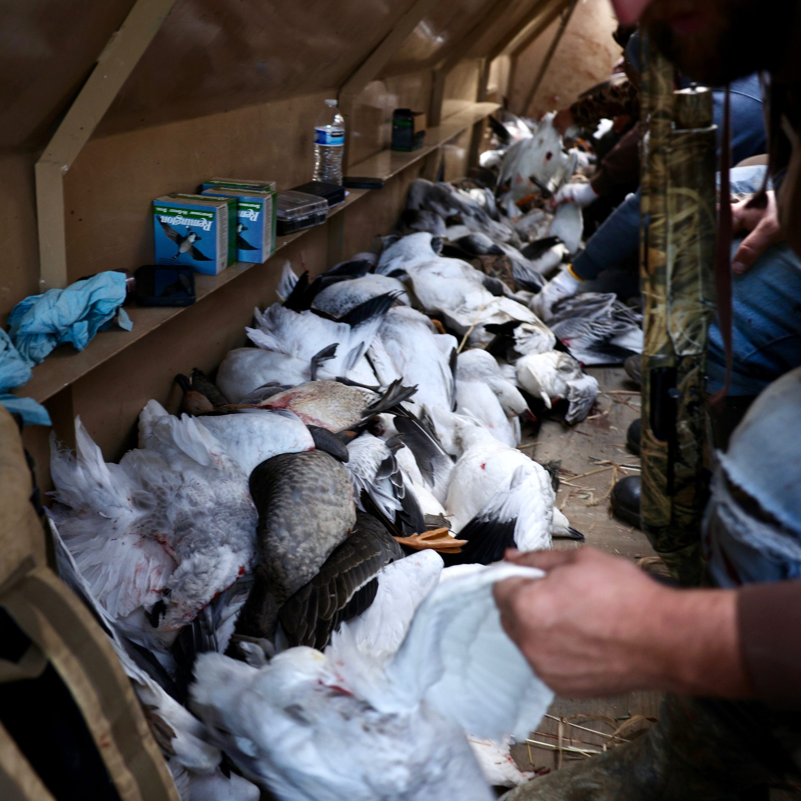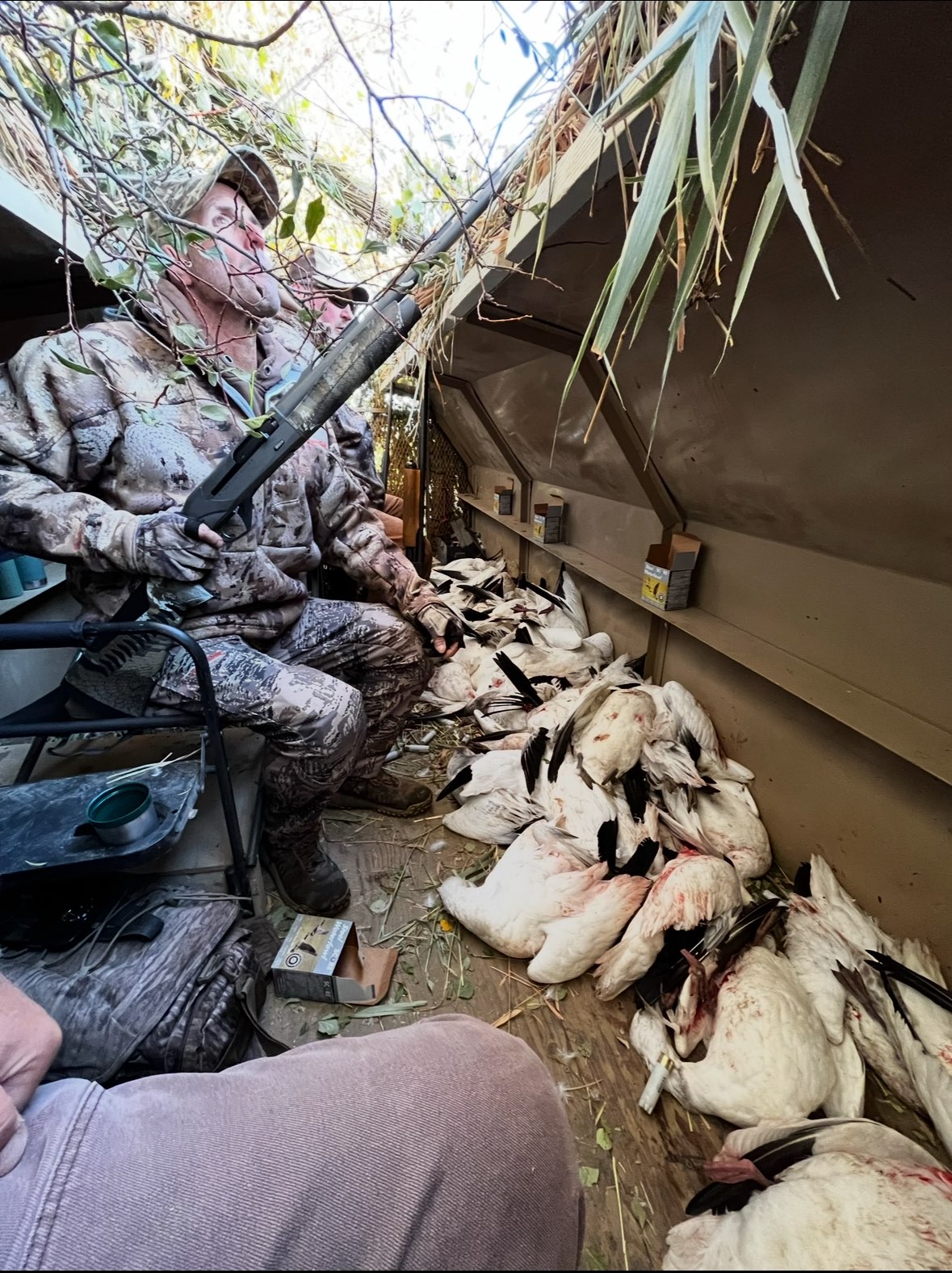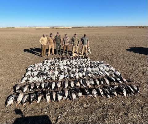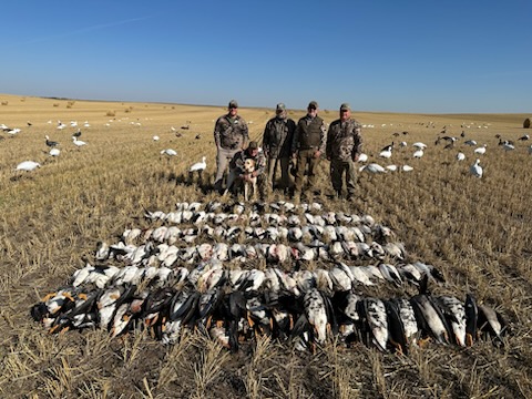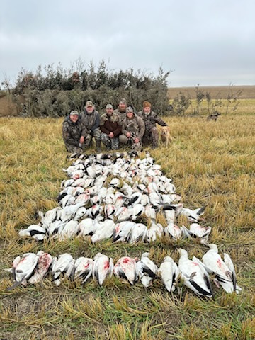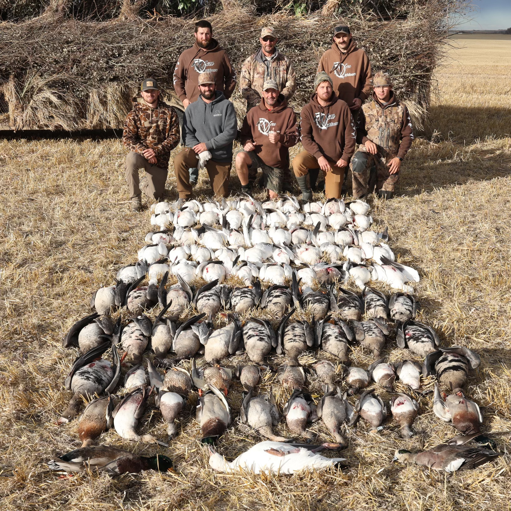 We hunt primarily out of A-Frame and Layout style blinds in dry fields for Geese in the morning and Ducks in the afternoon in freshly scouted fields. If limits of 2 species or near limits are reached in the morning hunt most likely we will opt to not hunt the afternoon.